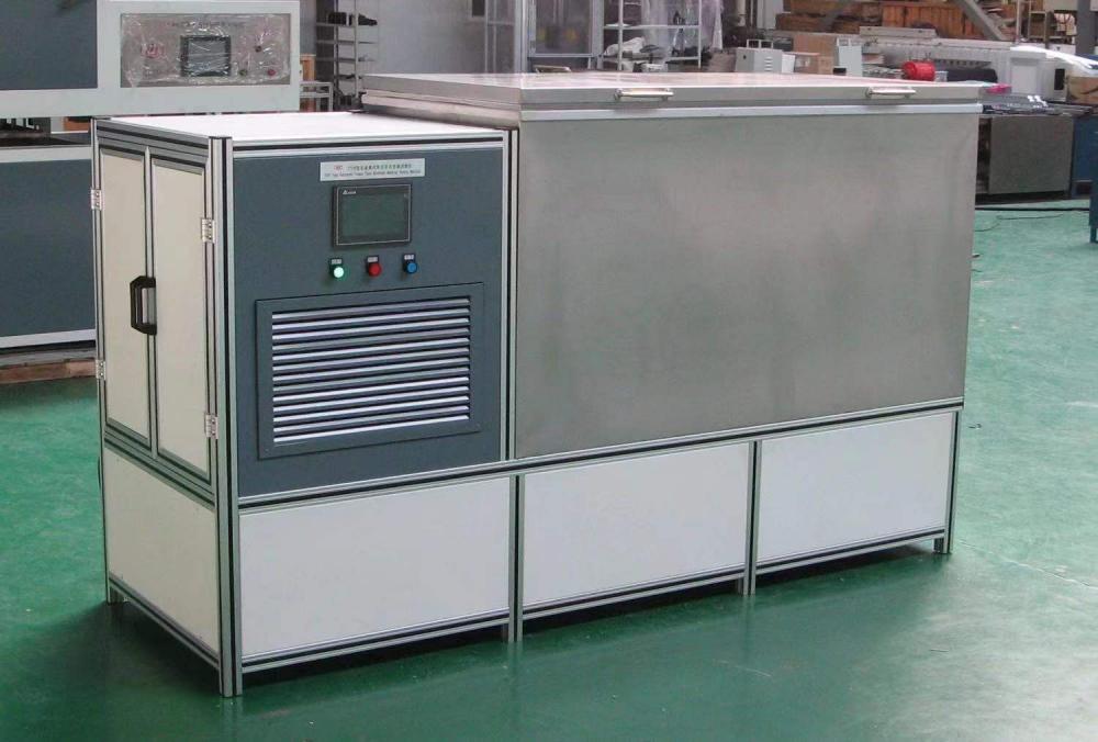 本試驗裝置是根據國標GB/T310.12-2016《陶瓷磚試驗方法第12部分:抗凍性的測定》、GB/T4111-2013《混凝土砌塊和試驗方法》抗凍性試驗、GB11968-2020《蒸壓加氣混凝土砌塊》抗凍性試驗方法、GB11969-2020《蒸壓加氣混凝土抗凍性試驗方法》、GB/T50082-2009《普通混凝土長期性能和耐久性能抗凍性試驗方法》、GB9966.1-2001《天然飾面石材抗凍性試驗方法》、GB/T2542-2012砌墻磚試驗方法中凍融試驗、JGJ/T70-2009《建筑砂漿基本性能試驗方法》中抗凍性試驗等進行設計制造的。該設備具有高自動化,高效率,實時溫度曲線顯示,具有停電保持功能,操作簡單方便,運行可靠。不進行任何調整和監視,自動完成“降溫——保溫——化霜——進水——浸泡——泄水”等全過程。其材料絕大部分選用不銹鋼,制冷系統全部采用進口優質元件。